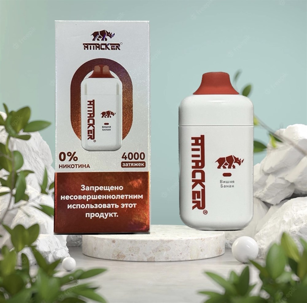 Купить одноразовые безникотиновые электронные сигареты Attacker W4 на 4000 затяжек с подзарядкой Type-C с доставкой или самовывозом из вейп шопов в Москве и доставкой по России.