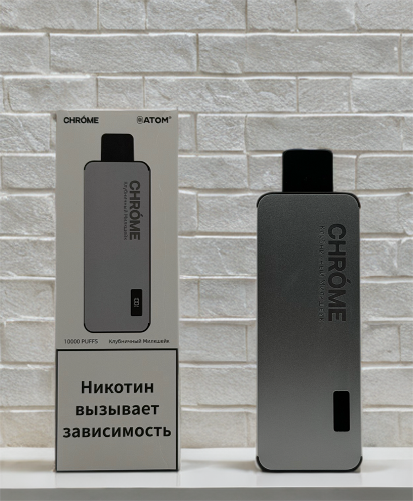 Chrome Atom 10000 — 10 000 затяжек в зеркальном хроме с 10 мл, 650 мАч Type-C, LED-индикаторами и 1.0 Ом mesh. 15 вкусных миксов от Red Bull с черникой до мармеладных червячков. Заряжай, смотри на индикаторы и парь блестяще — это atomic chrome в кармане.