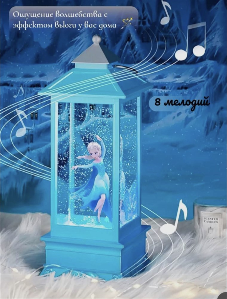 Холодное сердце Эльза фонарь музыкальный светодиодный/ Фонарь декоративный с метелью и новогодней музыкой, подарок для девочки