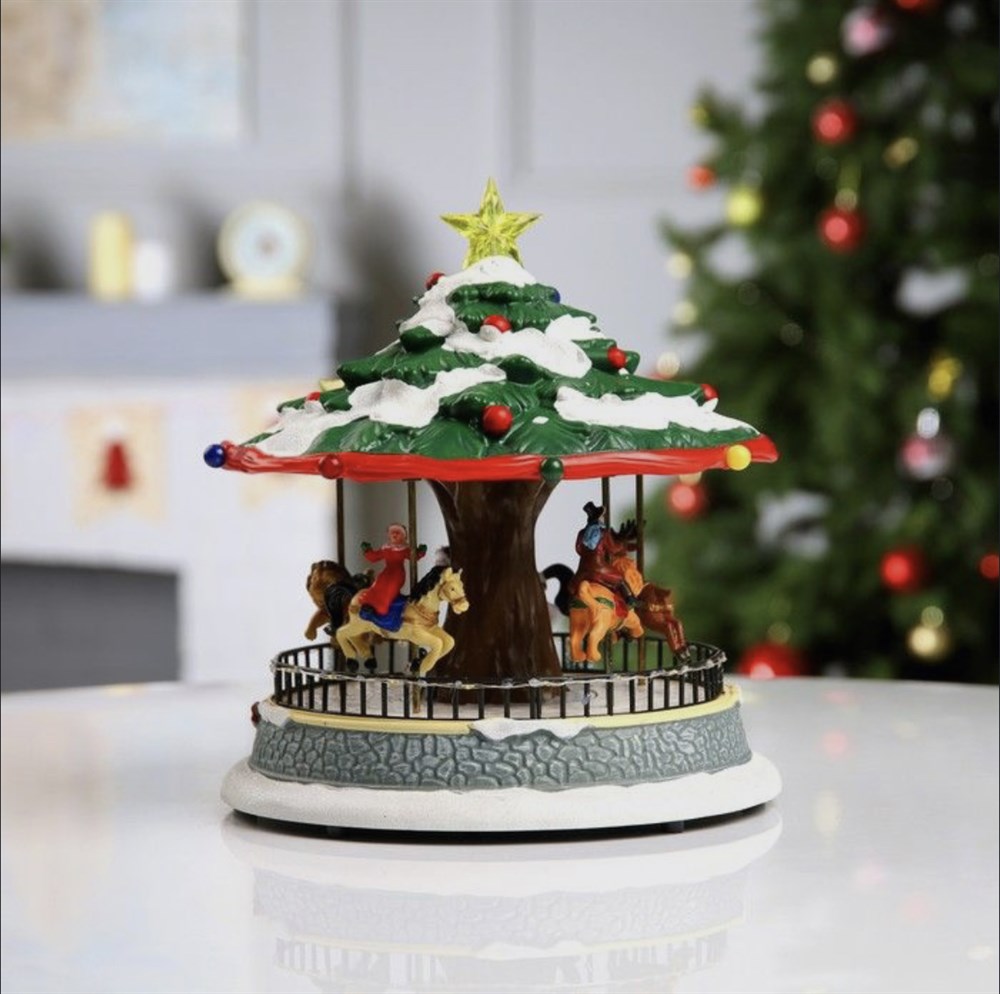 Новогоднее украшение светодиодное, Композиция музыкальная Карусель с подсветкой и лошадками / Светящаяся