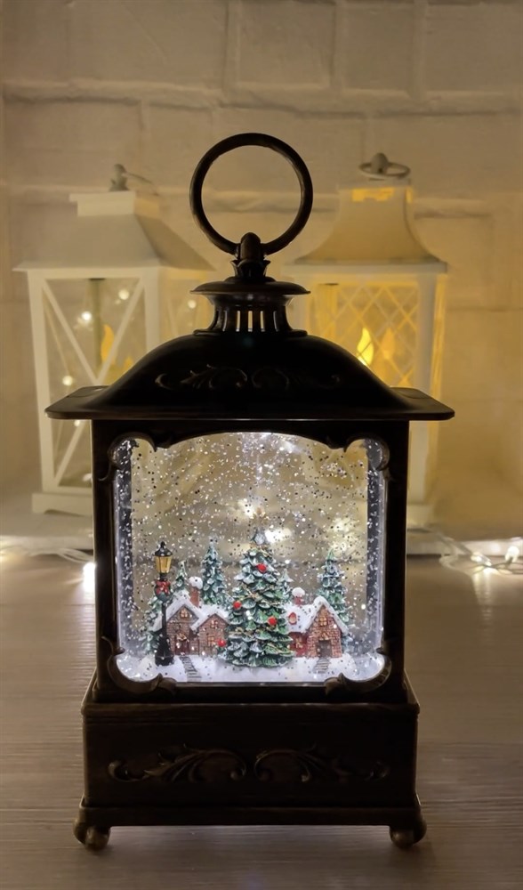 Автоматический эффект снега (трясти не нужно, так как есть встроенный моторчик) и подсветка теплого белого цвета - невероятно красивое зрелище.Питание осуществляется от 3-х батареек типа АА, что делает светильник портативным (батарейки идут в ПОДАРОК).