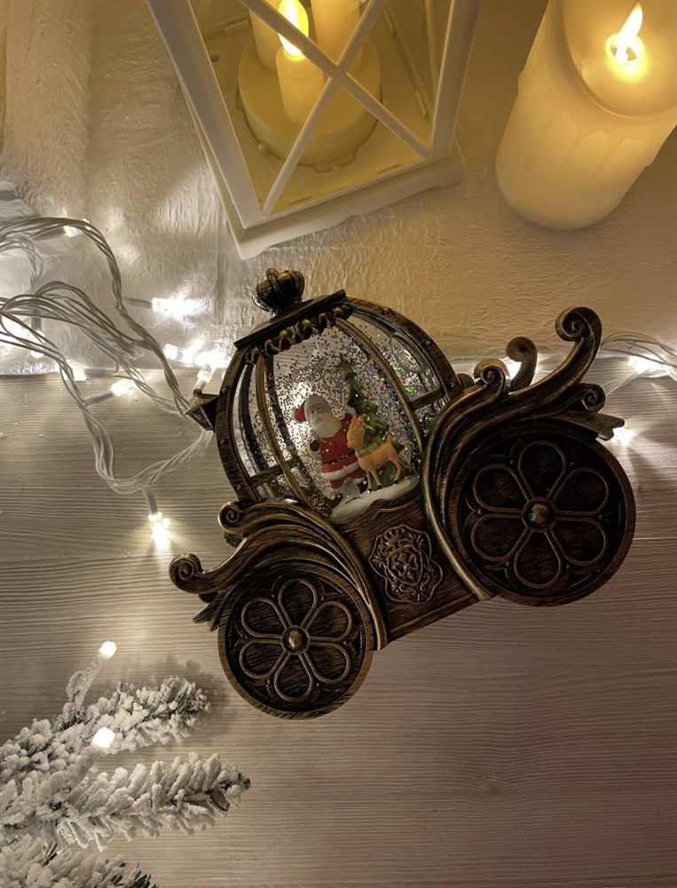 Автоматический эффект снега (трясти не нужно, так как есть встроенный моторчик) и подсветка теплого белого цвета - невероятно красивое зрелище.