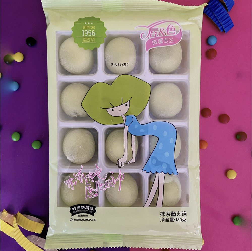 Рисовое пирожное моти (mochi, мочи) десерт с зеленым чаем матча