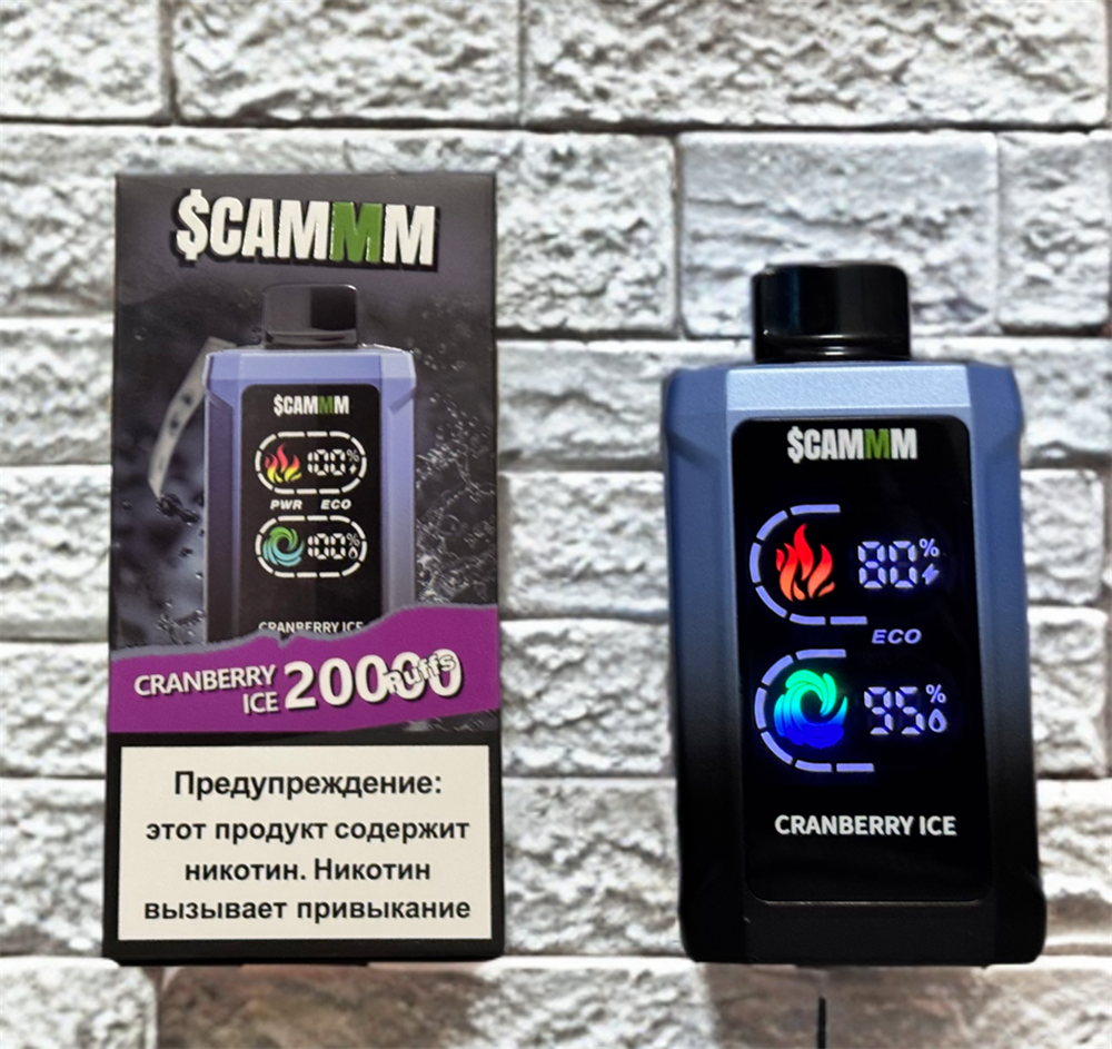 Купить одноразовые электронные сигареты Scammm Cyber 20000 на 20000 затяжек с подзарядкой Type-C и индикаторами оставшегося заряда и оставшейся жидкости с доставкой или самовывозом из вейп шопов в Москве и доставкой по России.