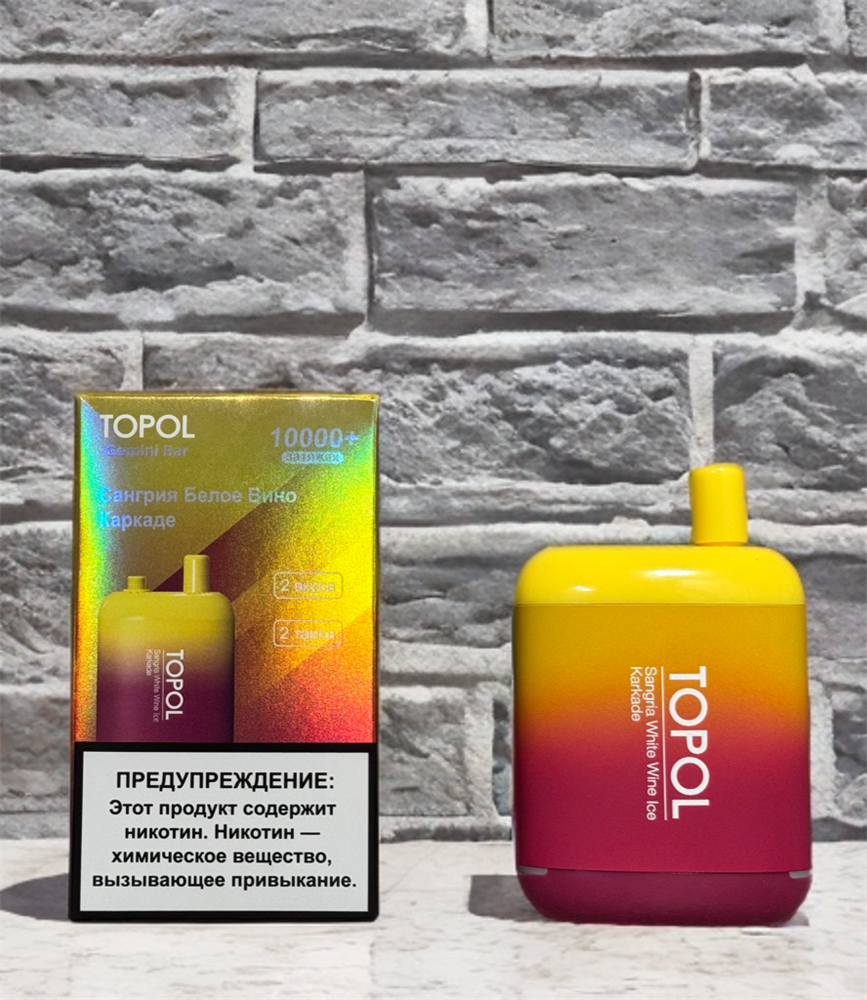Купить одноразовые электронные сигареты Topol Gemini Bar 10000 на 10000 затяжек с подзарядкой Type-C и двумя вкусами с доставкой или самовывозом из вейп шопов в Москве и доставкой по России.