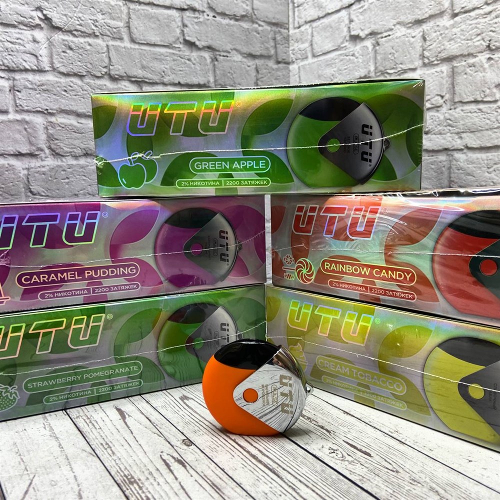 Купить одноразовые электронные сигареты UTU Pulse на 2200 затяжек в форме круга с железным спиннером с доставкой или самовывозом из вейп шопов в Москве и доставкой по России.