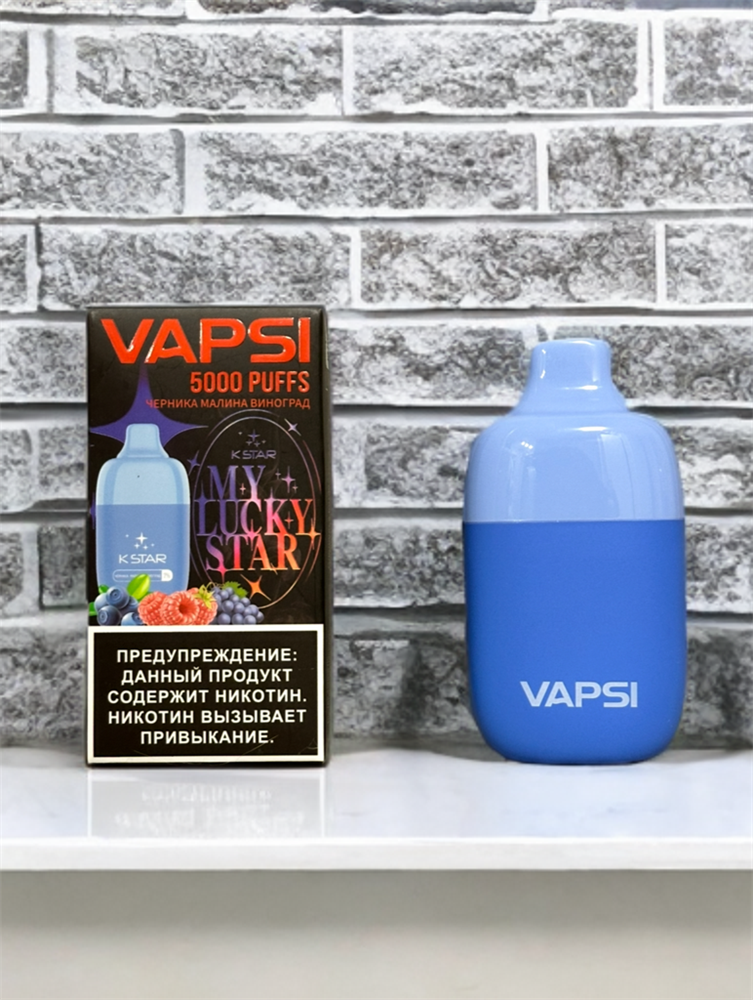 Купить одноразовые электронные сигареты Vapsi K Star на 5000 затяжек с подзарядкой Type-C с доставкой или самовывозом из вейп шопов в Москве и доставкой по России.