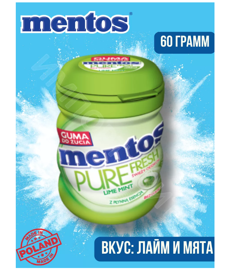 Жевательная резинка Ментос Pure Fresh Лайм Мята 60г