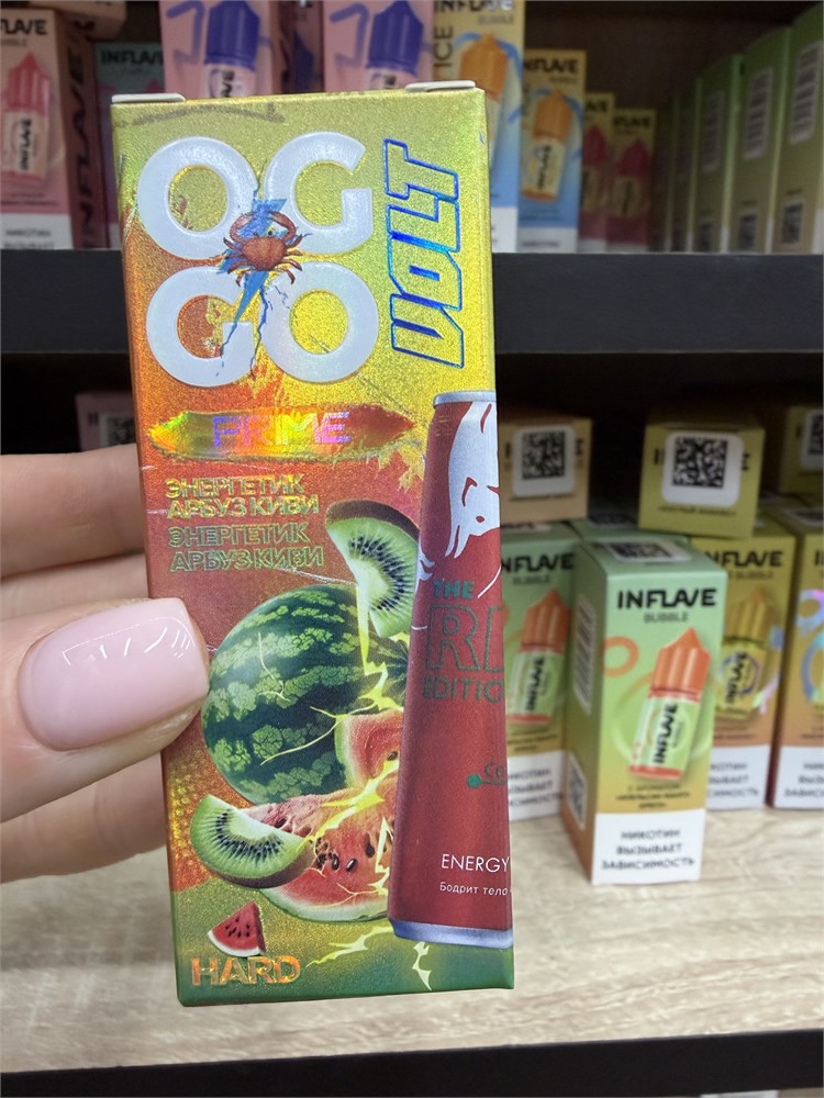 Oggo Prime Volt hard — это самая мощная версия серии Volt: классические вкусы энергетических напитков (Red Bull, Burn, Monster и аналоги) в усиленной рецептуре с жёстким 20 мг солевым никотином. 20 мг hard — бьёт сильно, бодрит мгновенно, держит крепко и долго, без лишней жёсткости. Соотношение 50/50 — вкус раскрывается ярко и сразу, пар свежий, газированный и насыщенный, идеально для подов и MTL/RDTL. Ключевые плюсы линейки Prime Volt hard: 20 мг hard — сверхкрепкий удар, который реально ощущается с первой затяжки 50/50 PG/VG — максимальная вкусопередача + комфортный пар без сухости 30 мл — хватает на 1–2 недели интенсивного парения Газировочный профиль + лёгкое охлаждение — как будто пьёшь холодный энергетик Ароматы чистые, стабильные и очень похожи на оригинальные банки — без химии и быстрого «плывущего» вкуса Вкусовая линейка (10 энергетических бомб): Энергетик манго-маракуйя — тропический энергетик с маракуйей и манго Энергетик адреналин — классический мощный энергетик с яркой газировкой Энергетик виноград — виноградный энергетик, свежий и бодрящий Энергетик персик-манго — персиково-манговый энергетик, кремово-сочный Энергетик арбуз-киви — арбуз + киви в стиле энергетика с холодком Энергетик ананас — тропический ананасовый энергетик Энергетик смородина — чёрная смородина + газировка и лёд Энергетик клубника-малина — ягодный энергетик с клубникой и малиной Энергетик вишня — вишнёвый энергетик, кисленький и бодрящий Энергетик гранат — терпкий гранатовый энергетик с освежающим финишем Oggo Prime Volt 20 мг hard — это когда хочется пить энергетик, но парить. От классического адреналина до тропических и ягодных версий — серия для тех, кто любит бодрость, газировку и сверхкрепкий никотин в каждой затяжке. Бери и заряжайся на 30 мл вперёд!