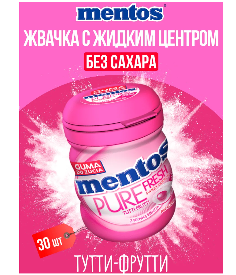 Жвачка Mentos Pure Fresh Tutti Frutti, Ментос тутти фрутти